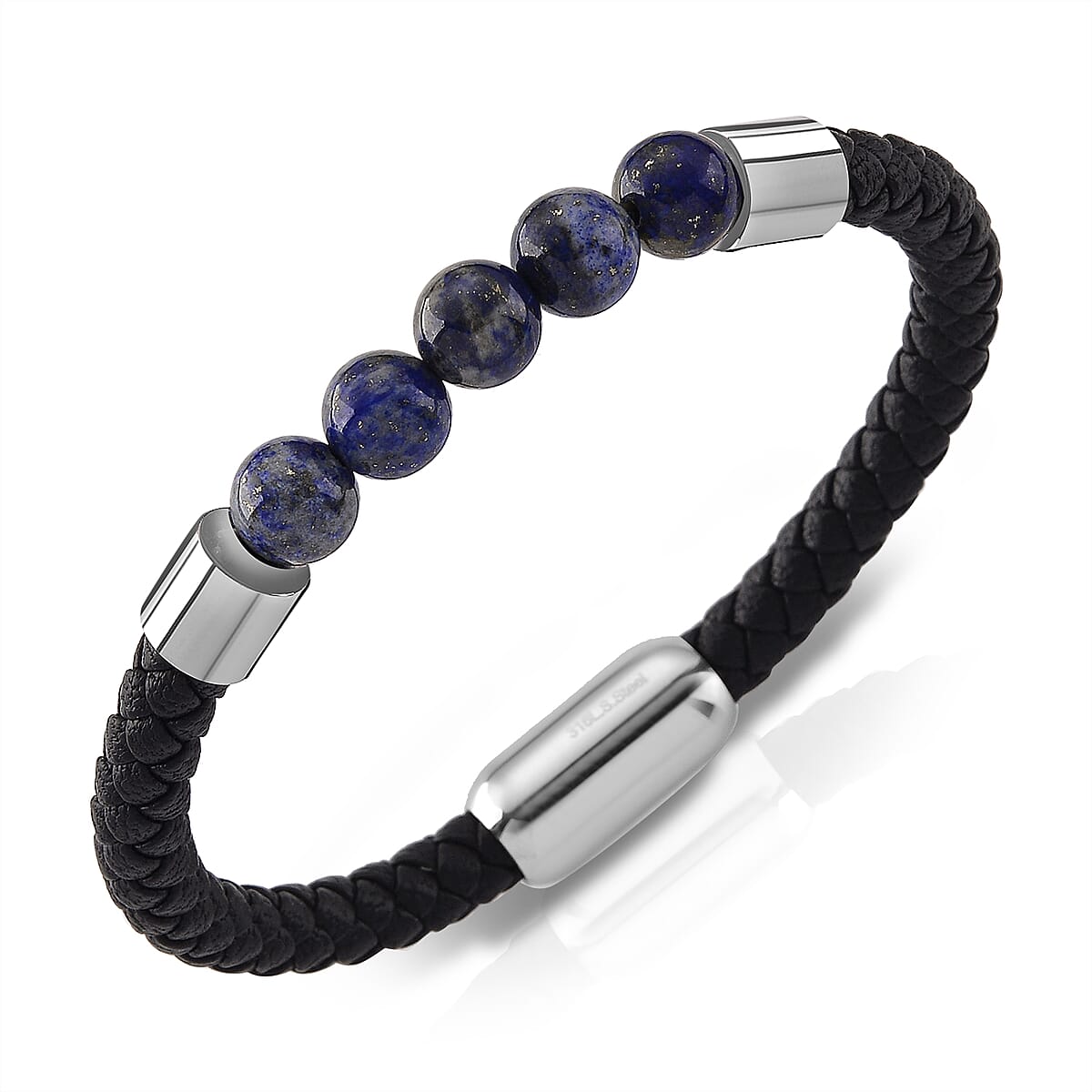Lapis Lazuli 15.00 ctw Beaded Bracelet in Stainless Steel (8.25 In)