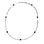 Lapis Lazuli 17.50 ctw 7-9mm Beaded Paper Clip Station Necklace in Stainless Steel 28 Inches, Tarnish-Free, Waterproof, Sweat Proof Jewelry