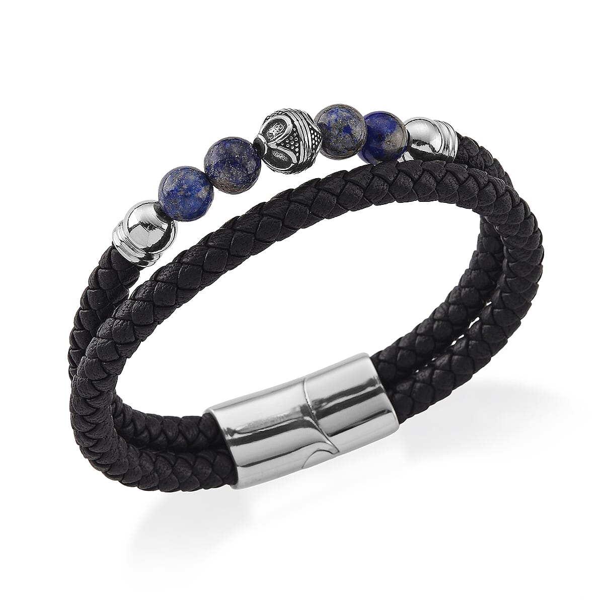 Lapis Lazuli 18.00 ctw Beaded Bracelet in Stainless Steel (8.50 In)