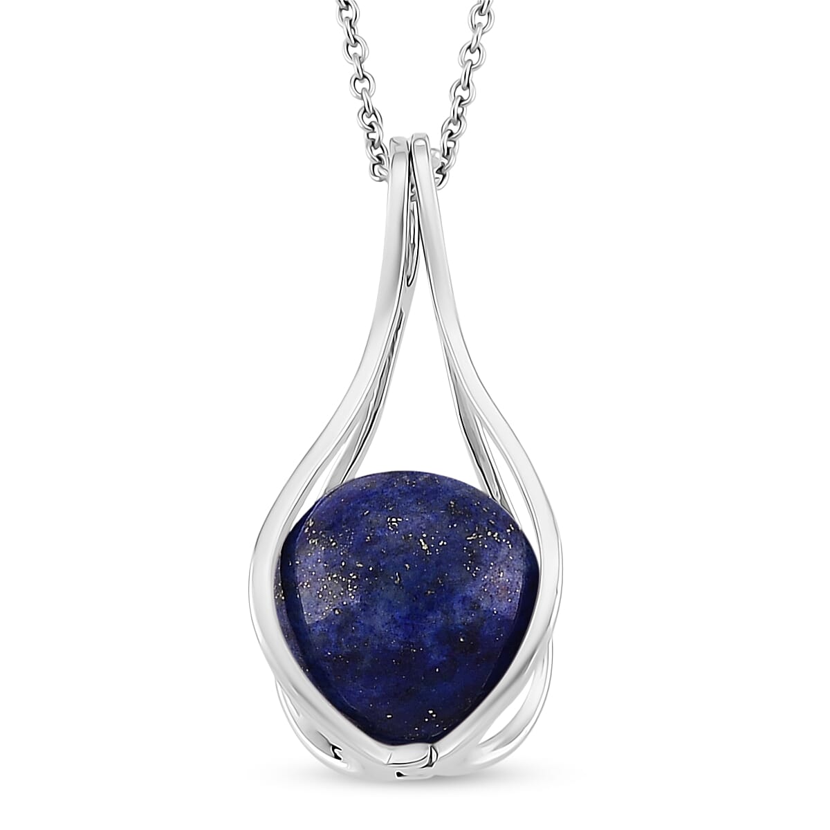 Lapis Lazuli 23.00 ctw Pendant in Silvertone with Stainless Steel Necklace 20 Inches