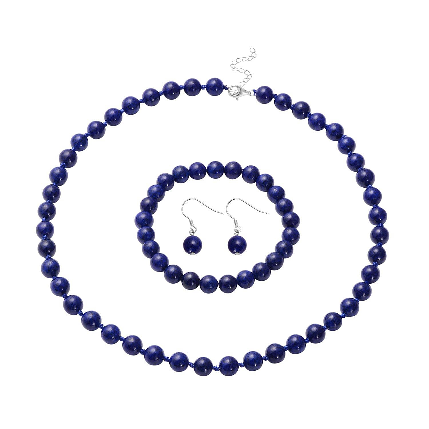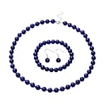 Lapis Lazuli 277.00 ctw Beaded Stretch Bracelet, Earrings and Necklace Set in Sterling Silver (18.00 In)