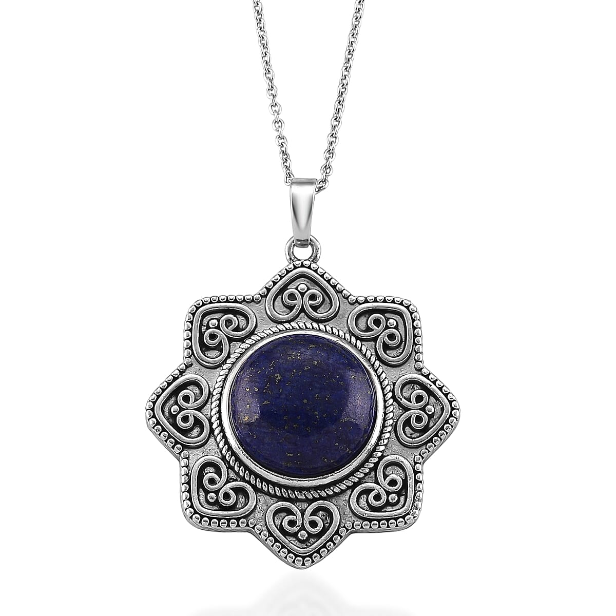Lapis Lazuli 38.00 ctw Pendant in Silvertone with Stainless Steel Necklace 20 Inches