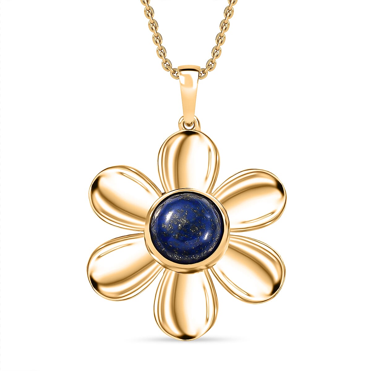 Lapis Lazuli 4.50 ctw Pendant in 18K YG Plated with ION Plated YG Stainless Steel Necklace (20 Inches)