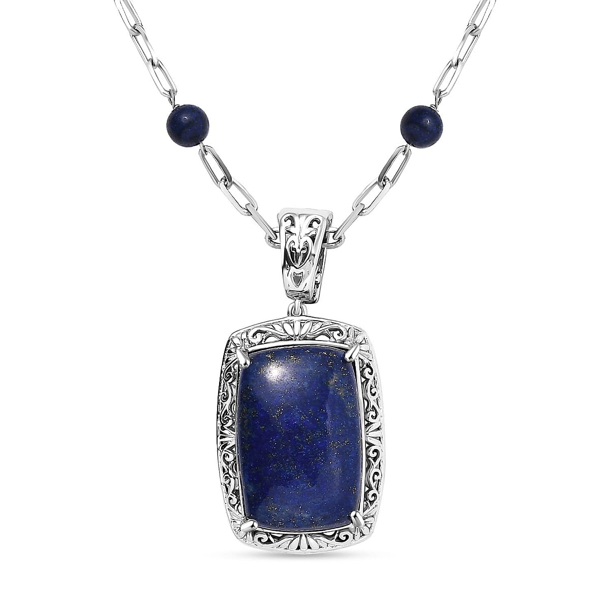 Lapis Lazuli 53.80 ctw Necklace in Platinum Over Copper with Magnet 18-20 Inches