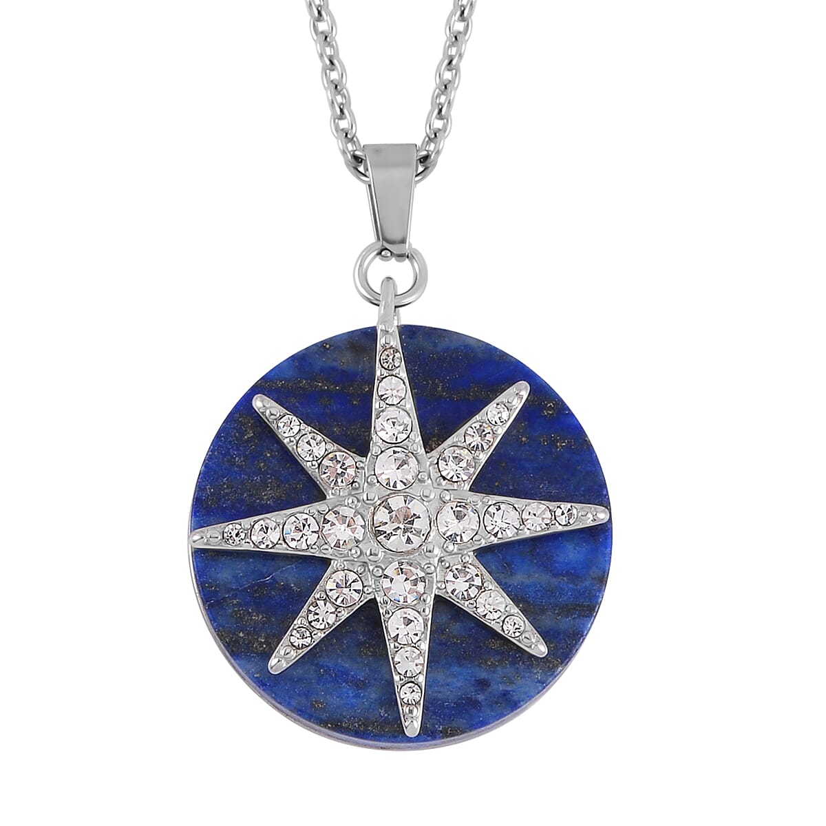 Lapis Lazuli and Austrian Crystal Pendant Necklace 20 Inches in Stainless Steel 10.00 ctw
