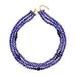Lapis Lazuli and Blue Glass Beaded Multi Strand Necklace 20-22 Inches in Goldtone 15.00 ctw