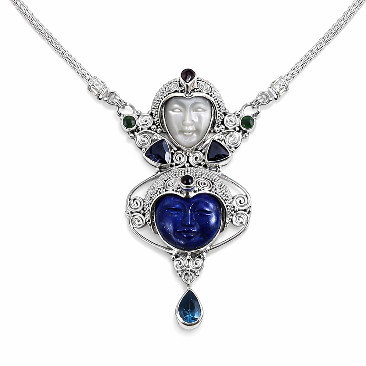 Lapis Lazuli and Multi Gemstone 18.00 ctw Necklace in Sterling Silver 20 Inches