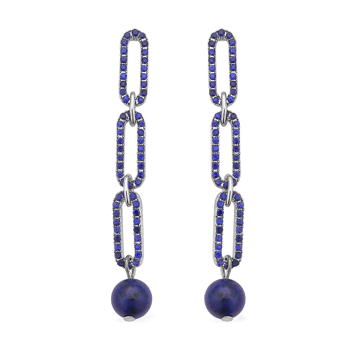 Lapis Lazuli and Pink Austrian Crystal Paper Clip Earrings in Silvertone 6.00 ctw