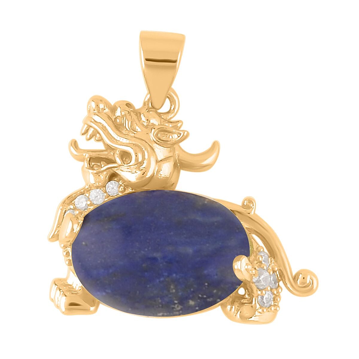 Lapis Lazuli and Simulated Diamond Pixiu Pendant in Goldtone 6.10 ctw