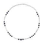 Lapis Lazuli Beaded Station and Paper Clip Chain Necklace (30 Inches) in Stainless Steel 50.00 ctw