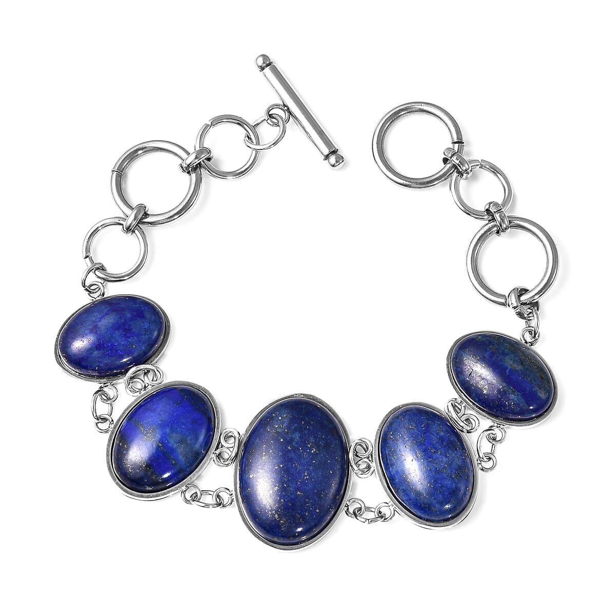Lapis Lazuli Block and Toggle Clasp Bracelet in Stainless Steel (6.50 In) 55.00 ctw