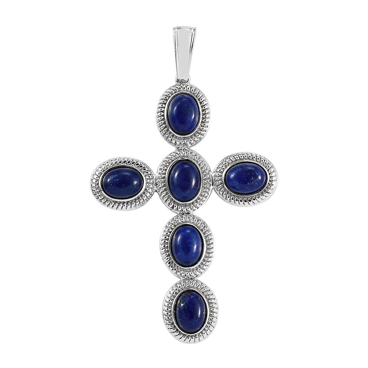 Lapis Lazuli Cross Pendant in Stainless Steel 10.20 ctw
