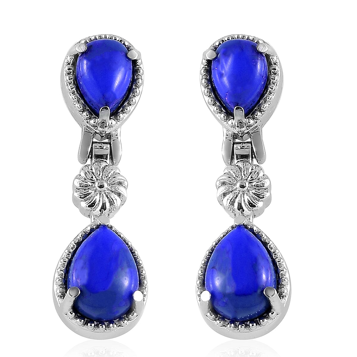 Lapis Lazuli Dangling Earrings in Stainless Steel 5.25 ctw