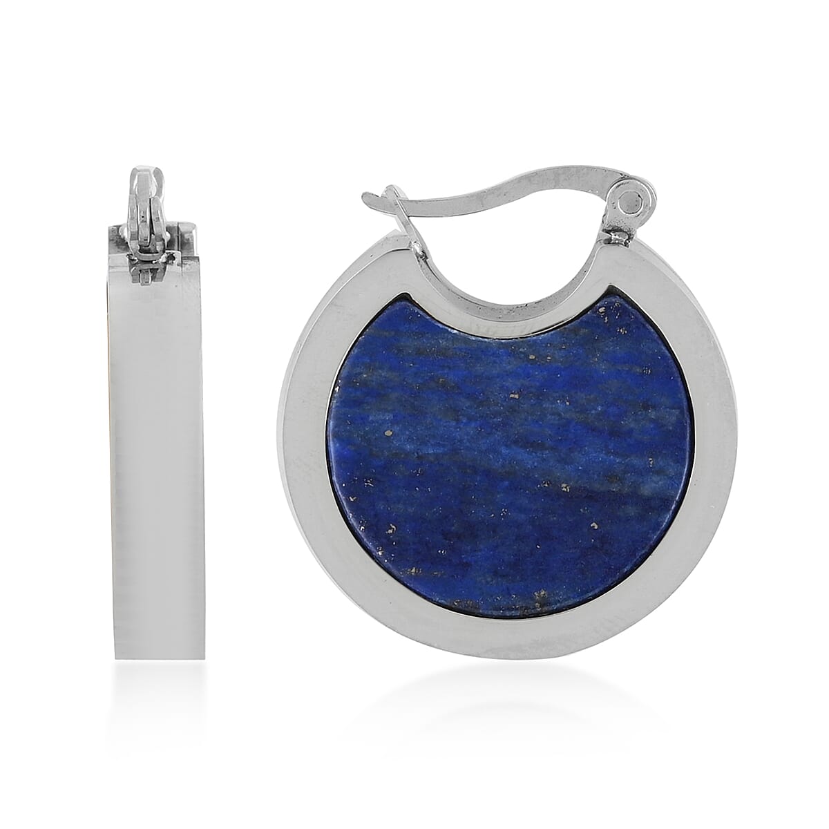 Lapis Lazuli Inlay Hoop Earrings in Stainless Steel 20.00 ctw