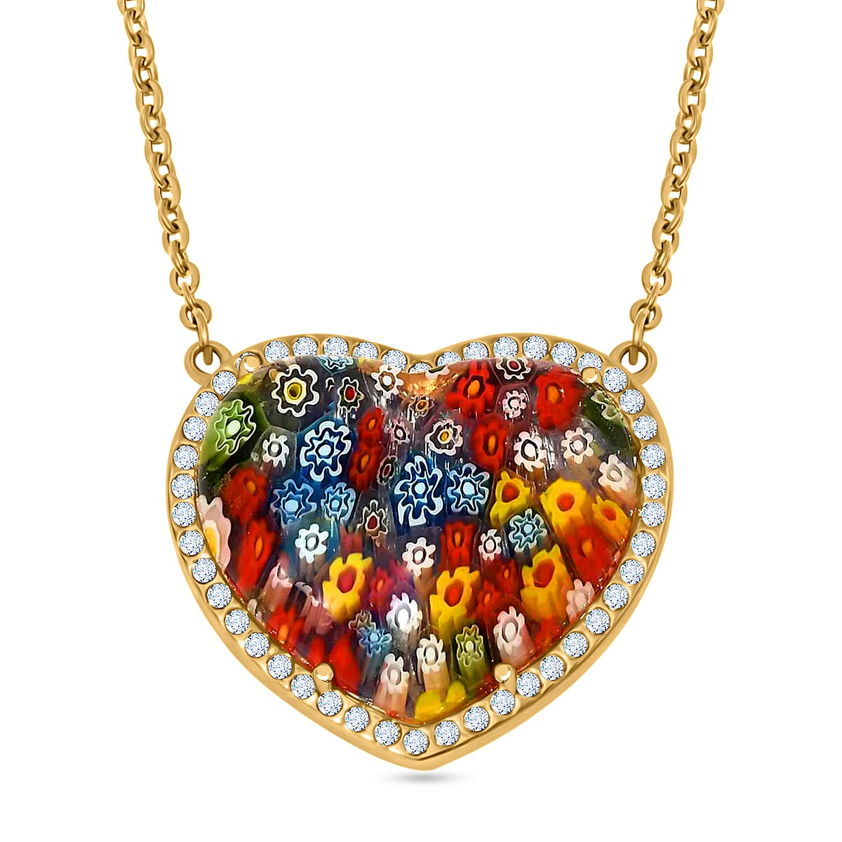 Lapis Lazuli, Multi Color Murano Style, Austrian Crystal Reversible Heart Necklace 20 Inches in ION Plated Yellow Gold Stainless Steel, Gift For Her 25.00 ctw