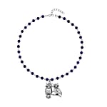Lapis Lazuli, White and Black Austrian Crystal 90.00 ctw Owl Couple Necklace in Silvertone 18-20 Inches