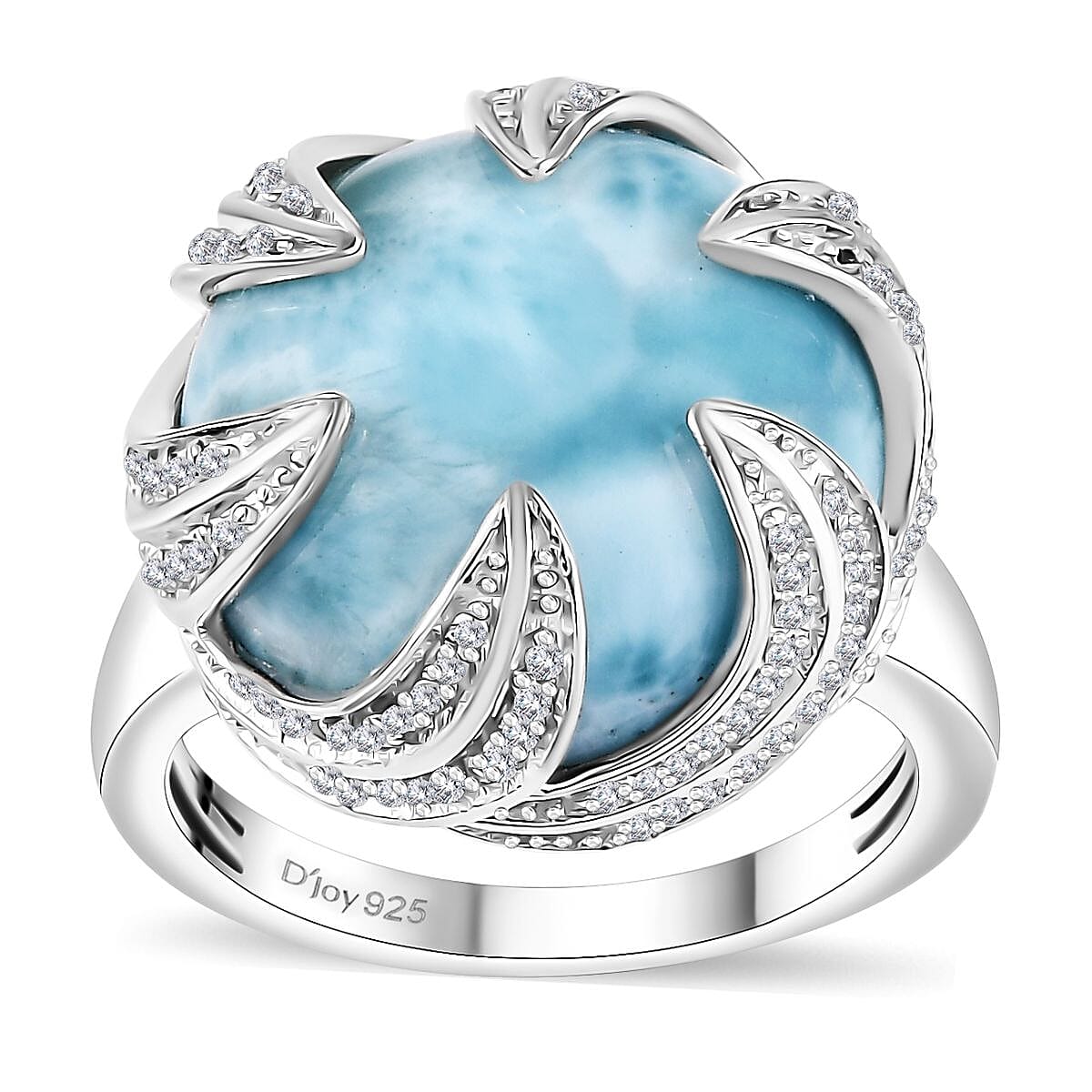 Larimar and White Zircon 14.85 ctw Ocean Waves Ring in Rhodium Over Sterling Silver (Size 9.0)