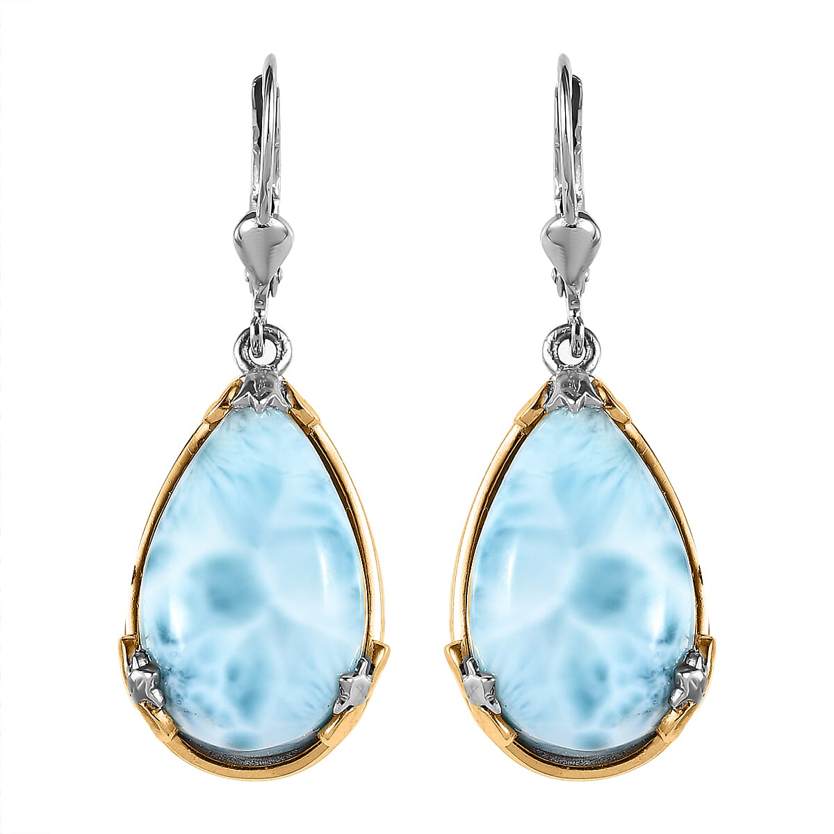 Larimar Lever Back Earrings in Vermeil Yellow Gold and Platinum Over Sterling Silver 18.50 ctw