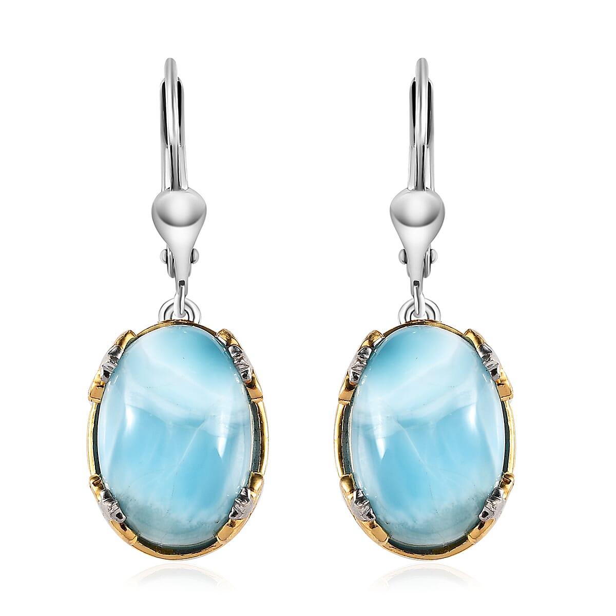 Larimar Solitaire Lever Back Earrings in Vermeil Yellow Gold and Platinum Over Sterling Silver 13.15 ctw