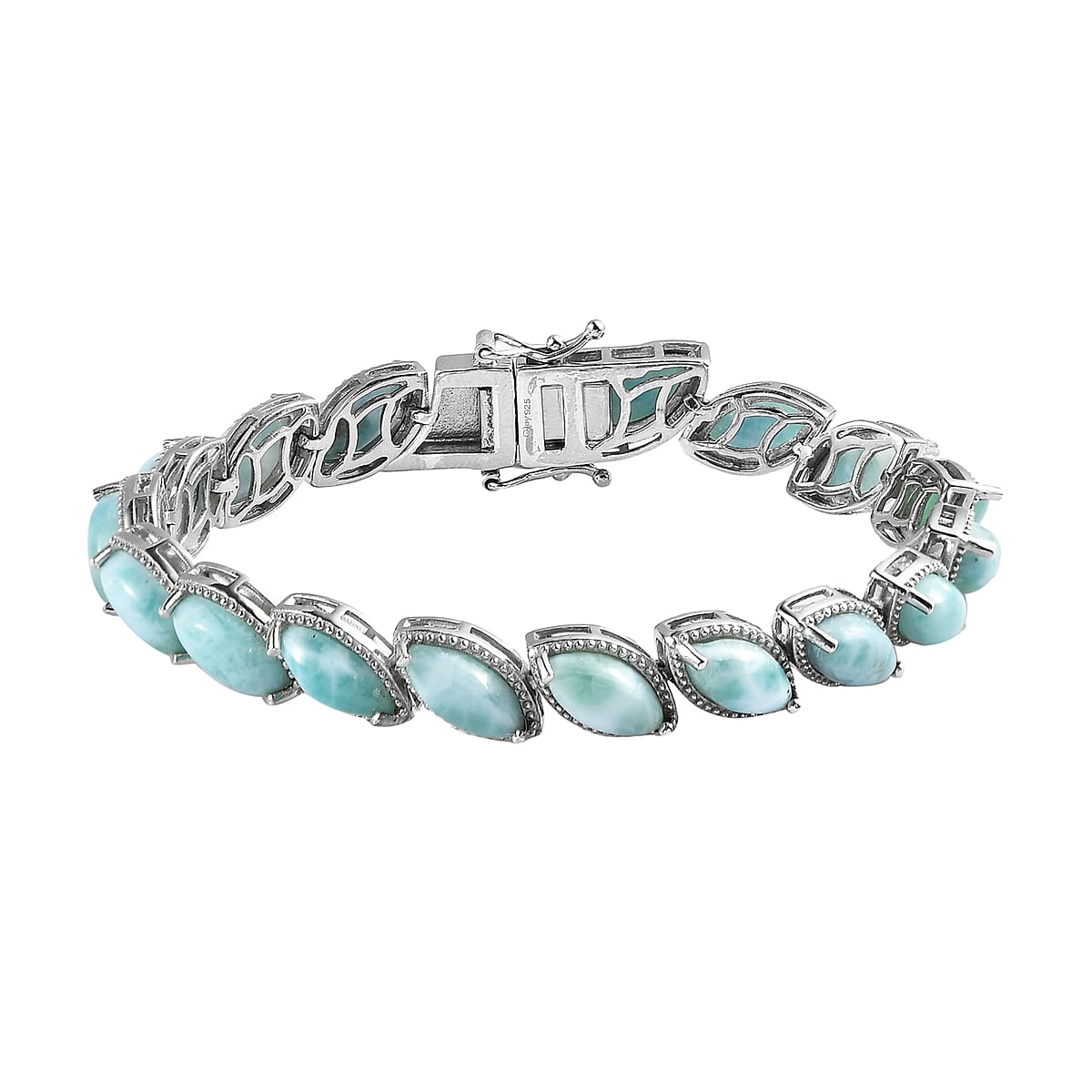 Larimar Tennis Bracelet in Platinum Over Sterling Silver (6.50 In) 15.50 Grams 21.90 ctw
