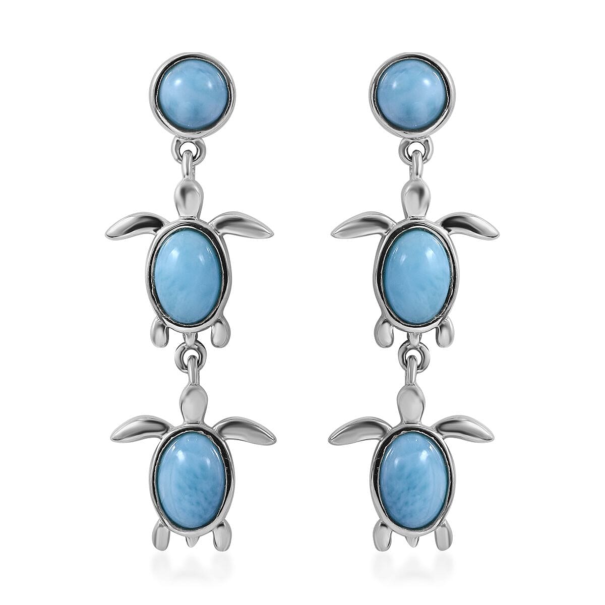 Larimar Turtle Dangling Earrings in Platinum Over Sterling Silver 4.90 ctw