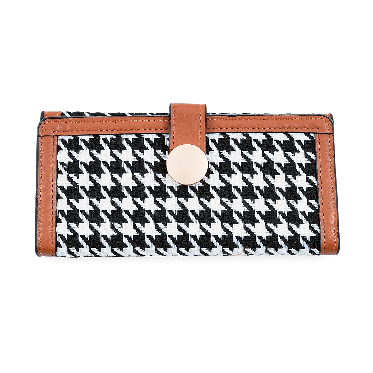 Las Vegas Closeout Deal BY:KY Cognac Houndstooth Pattern Faux Leather Wallet with Golden Accent