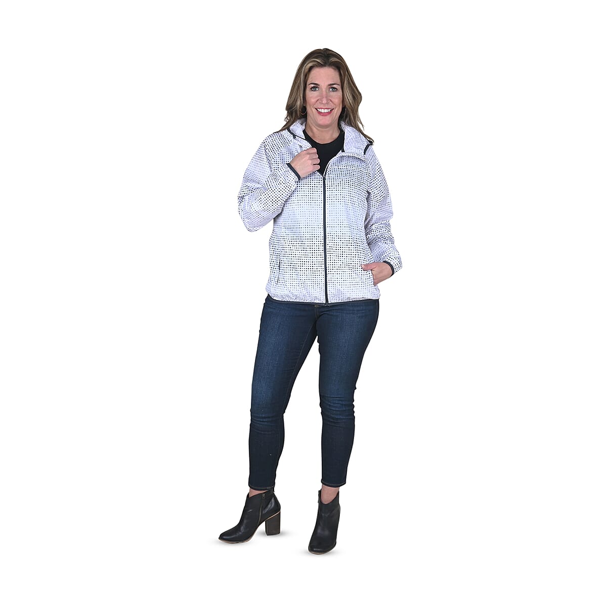 LAYER8 Black Polka Dots Blocked Hooded Windbreaker - Large