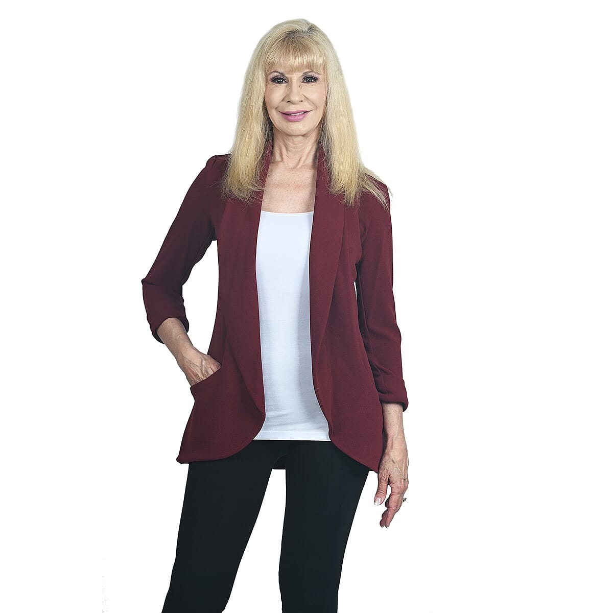 LEMON TART Burgundy Knit Casual Blazer Jacket For Women - L