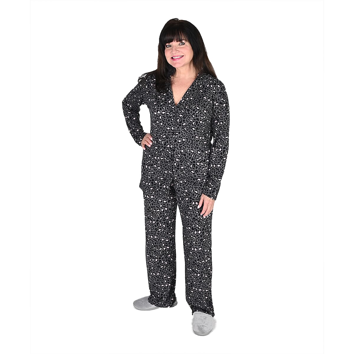 LEMON TART Pink and Grey Leopard Long Sleeve Collared PJ Set - 2X