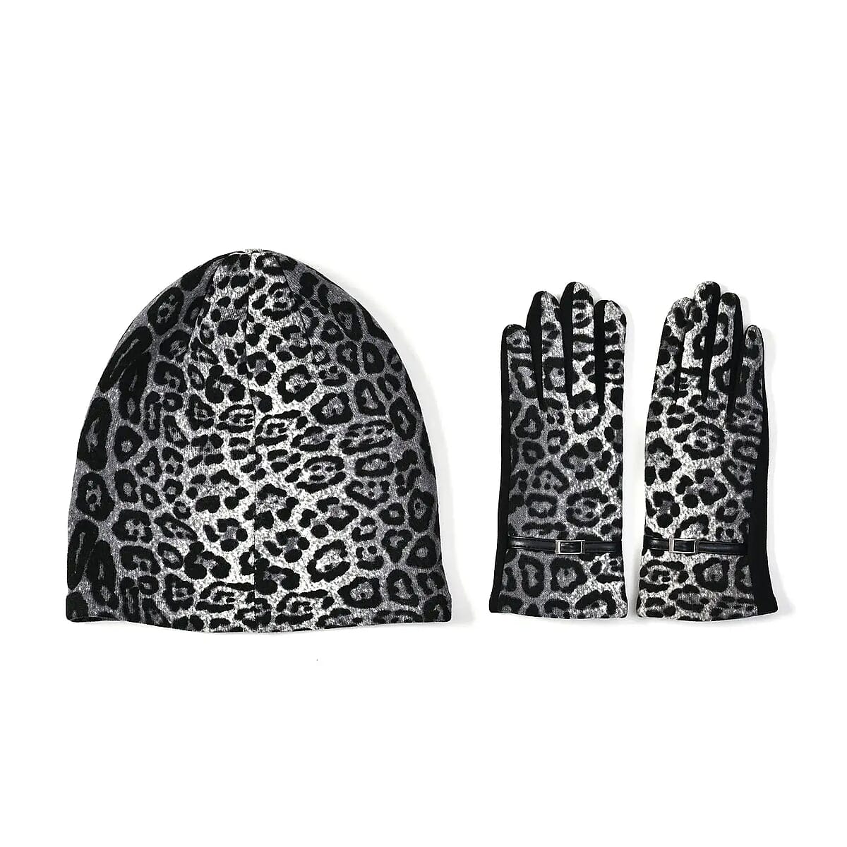 Leopard Skin Printed Hat and 1 Pair Gloves - Dark Gray