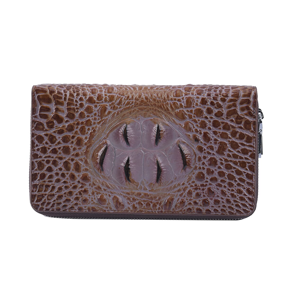 Light Brown 3D Embossed Genuine Leather Wallet With Double Zipped