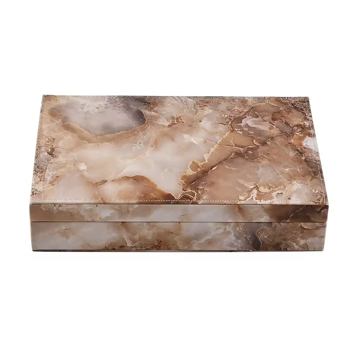 A. Its distinctive marble pattern, combined with the rich texture of faux leather, elevates the box's aesthetics, making it not only a functional storage solution but also a chic decor piece.