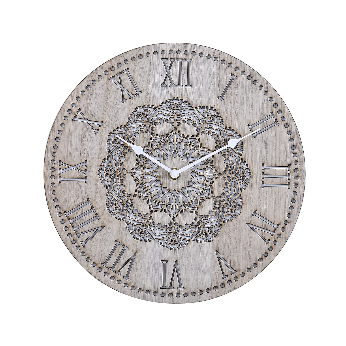 Light Wooden Quartz Sweep Movement Flower Pattern Wall Clock (AAx1 Not Included) | Wall Decor | Wall Art | Modern Wall Clock | Quartz Clock | Wall Clock for Living Room