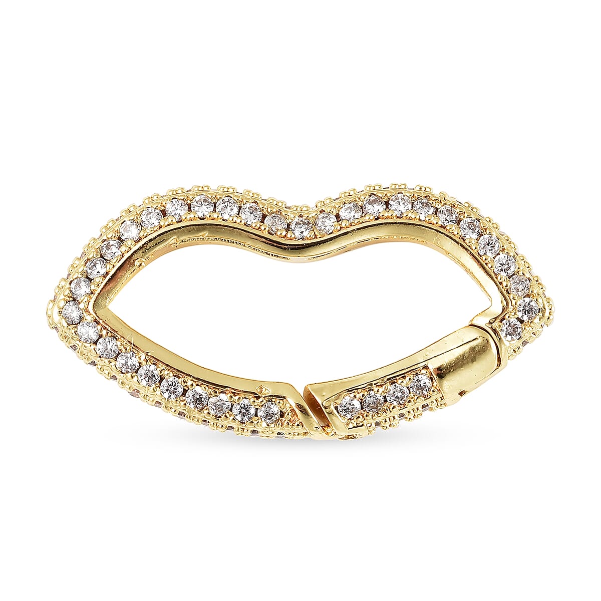 Lips Shaped White Zircon Carabiner Screw Lock Ring Clasp Charm Enhancer in Goldtone