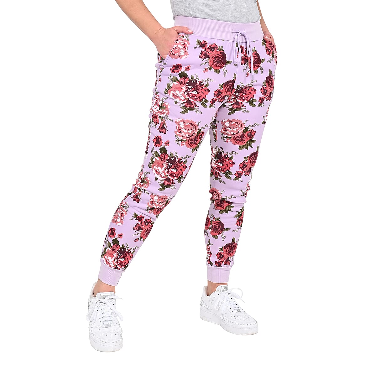 LIT26 Dusty Pink Vintage Rose Print Fleece Joggers - S