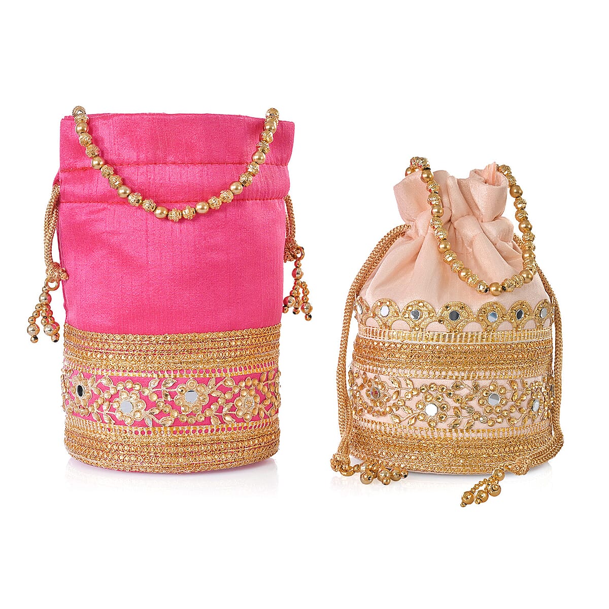 Livmore Baby Pink & Fuchsia Set of 2 Handcrafted Zardozi Work Potli Bag