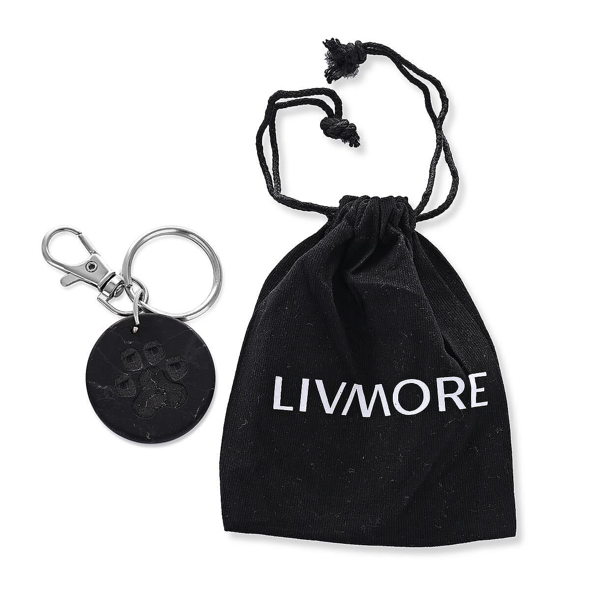 Livmore Black Paw Print Shungite Round Charm for Dogs