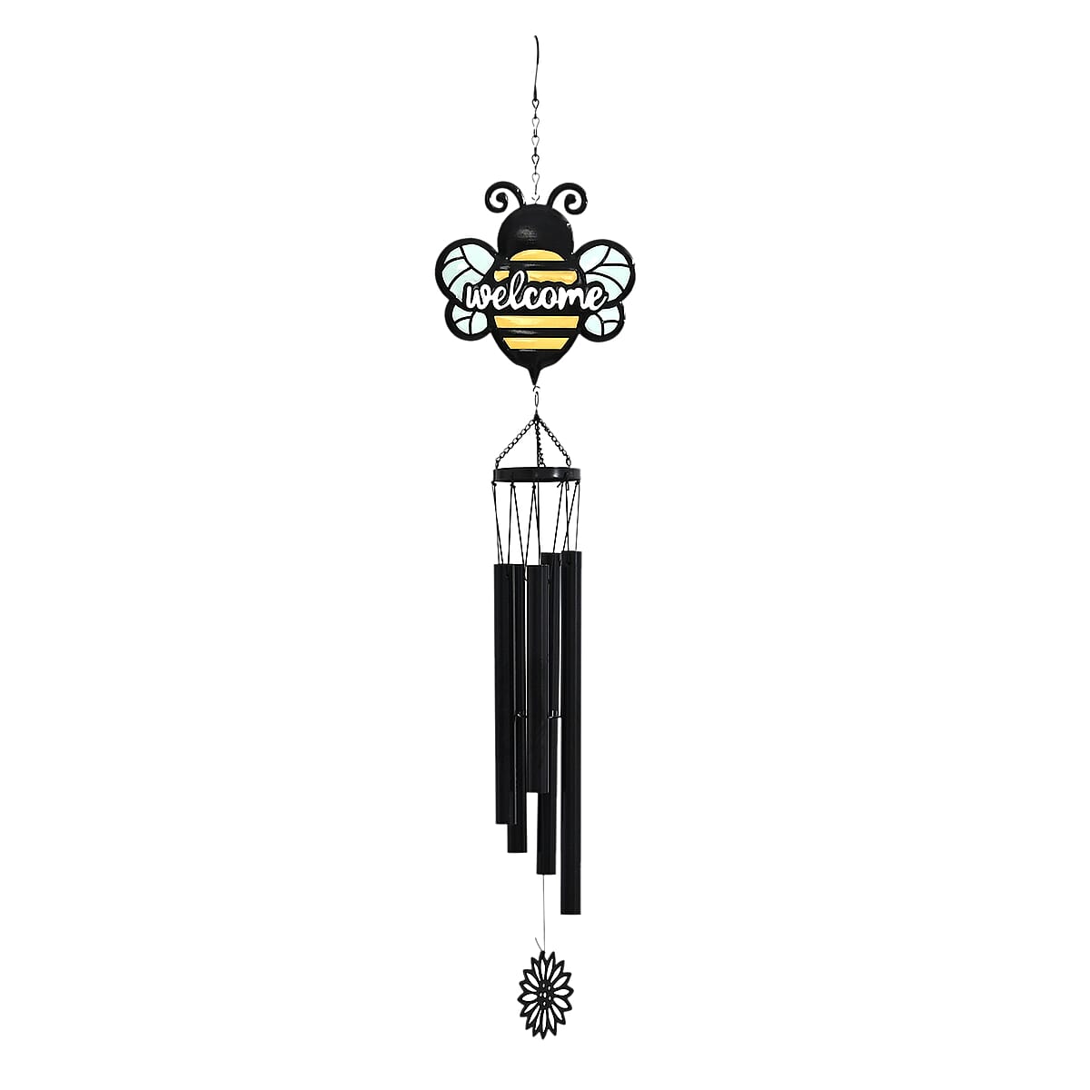 Livmore Dragonfly Design Welcome Wind Chime with 5 Iron Tube