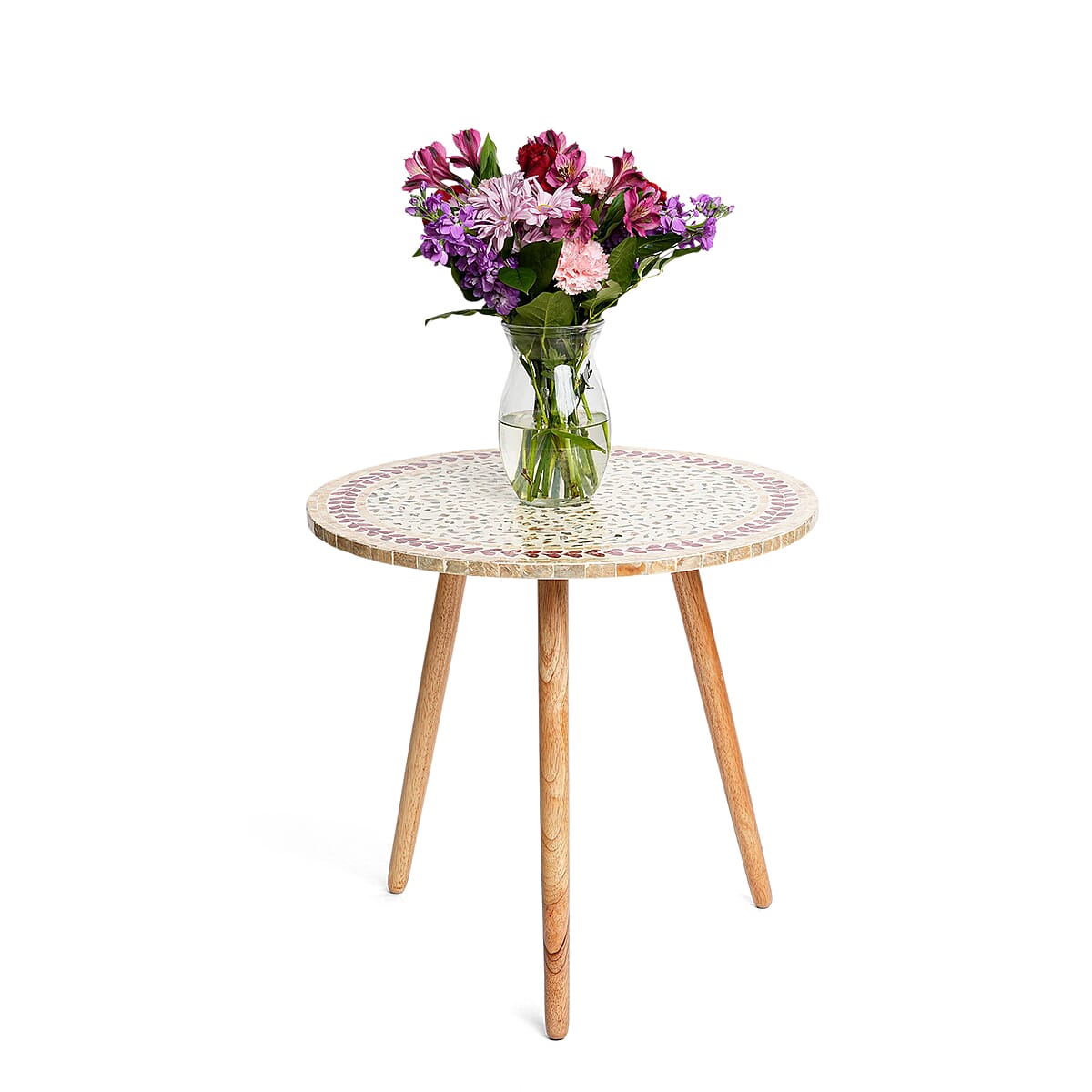 Revitalize your living space with the Livmore multi-color nacre side table. This modern accent piece brings vibrant artistry to any room. This durable side table's colorful mosaic pattern creates an instant conversation starter. You'll appreciate how this decorative table complements a wide range of interior styles.