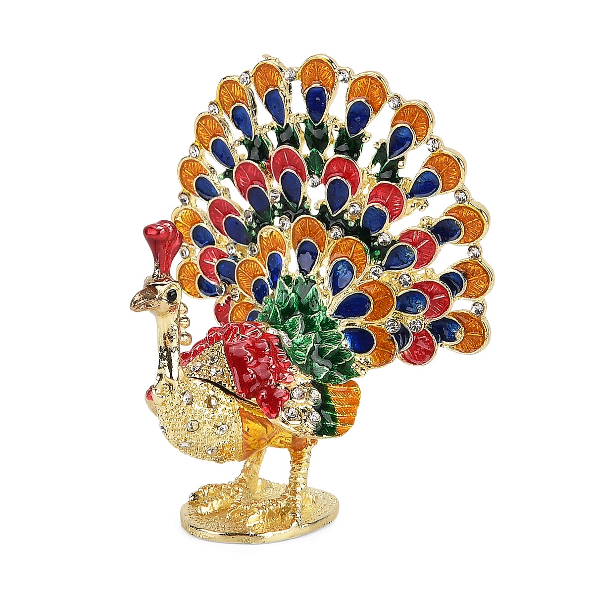 Livmore Multi Color Crystal, Enameled Peacock Trinket Box in Goldtone