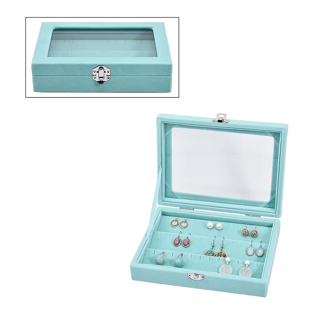 Livmore Turquoise Blue Velvet Earrings Box with Glass Window