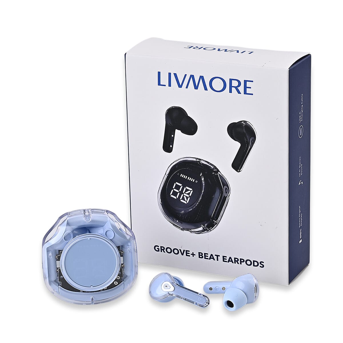 Livmore TWS Wireless Earbuds with Display - Purple
