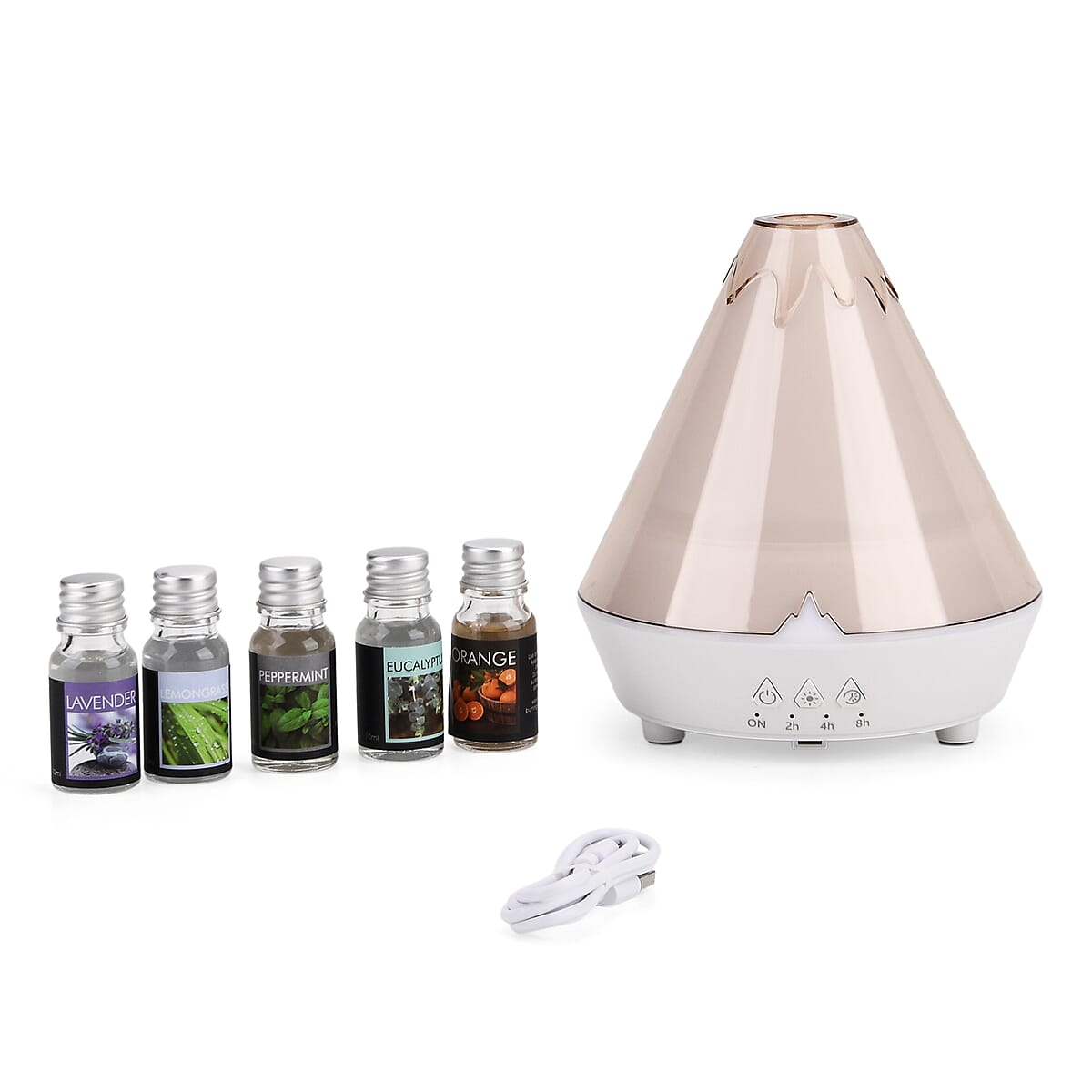 1 Humidifier, 5 Essential Oils, 1 USB Cable |