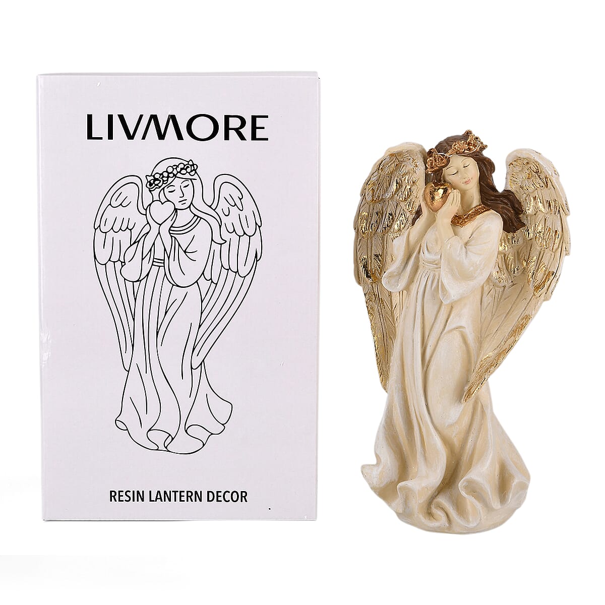 Livmore White Polyresin Angel Holding Heart Figurine with Light (2xAAA Battery not Included)