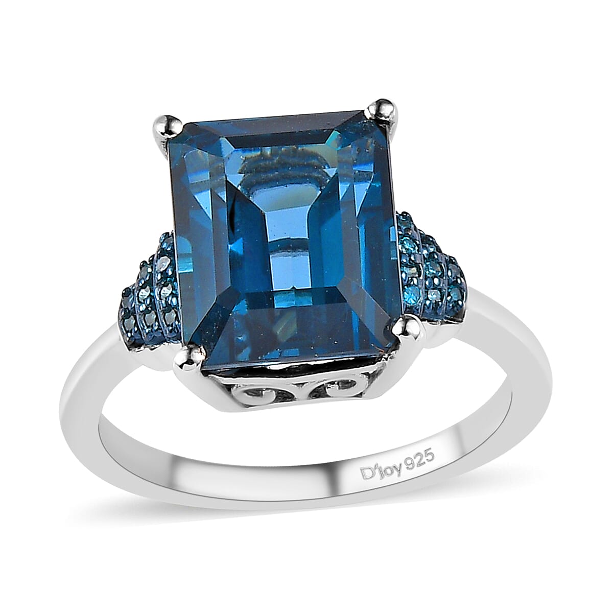 London Blue Topaz and Blue Diamond Ring in Platinum Over Sterling Silver (Size 6.0) 6.25 ctw