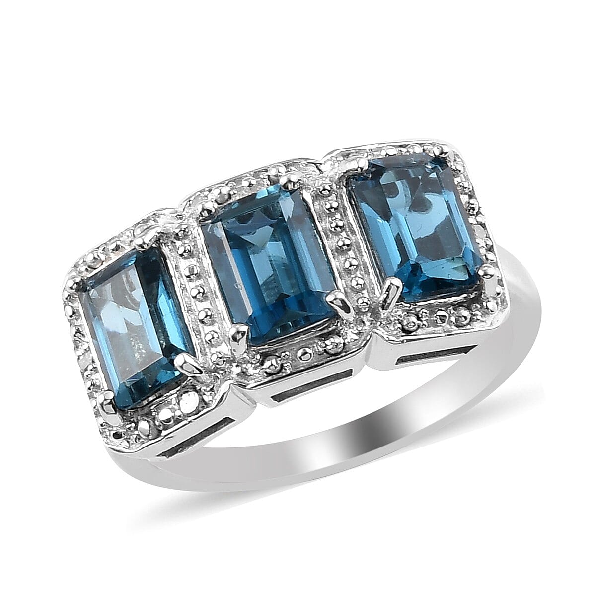London Blue Topaz and Diamond Accent Ring in Platinum Over Sterling Silver (Size 8.0) 5.85 ctw