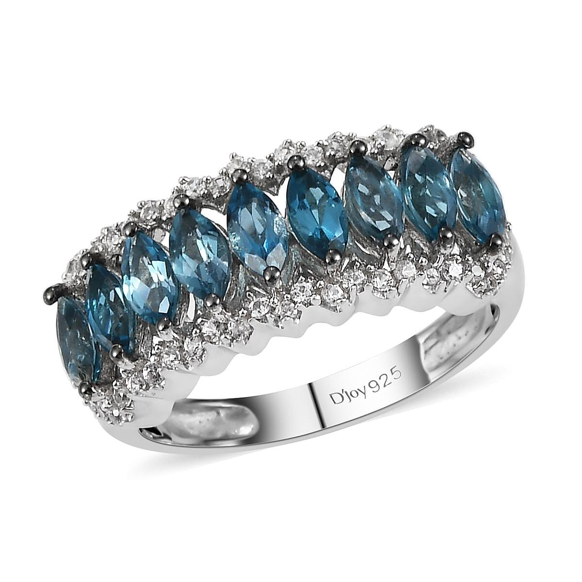 London Blue Topaz and Natural White Zircon Ring in Platinum Over Sterling Silver (Size 9.0) 1.90 ctw