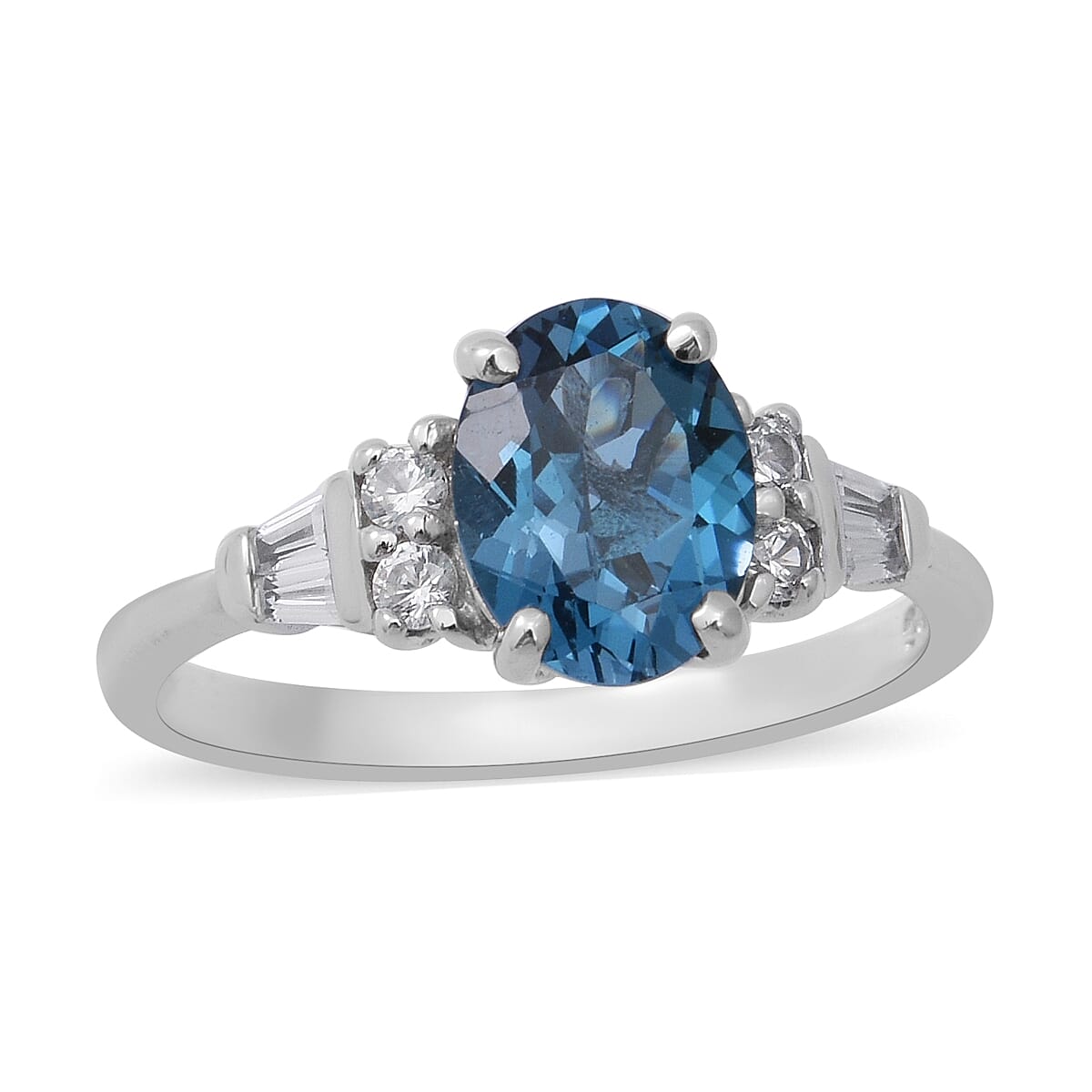 London Blue Topaz and White Zircon Ring in Platinum Over Sterling Silver (Size 7.0) 2.50 ctw