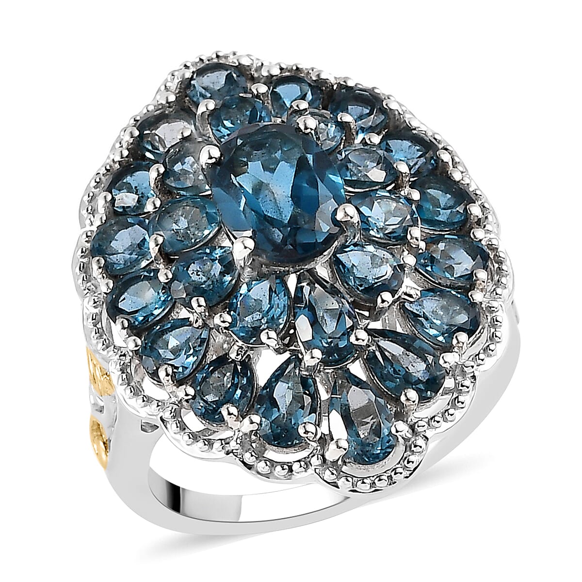 London Blue Topaz Cocktail Ring in Vermeil Yellow Gold and Platinum Over Sterling Silver (Size 8.0) 6.35 ctw