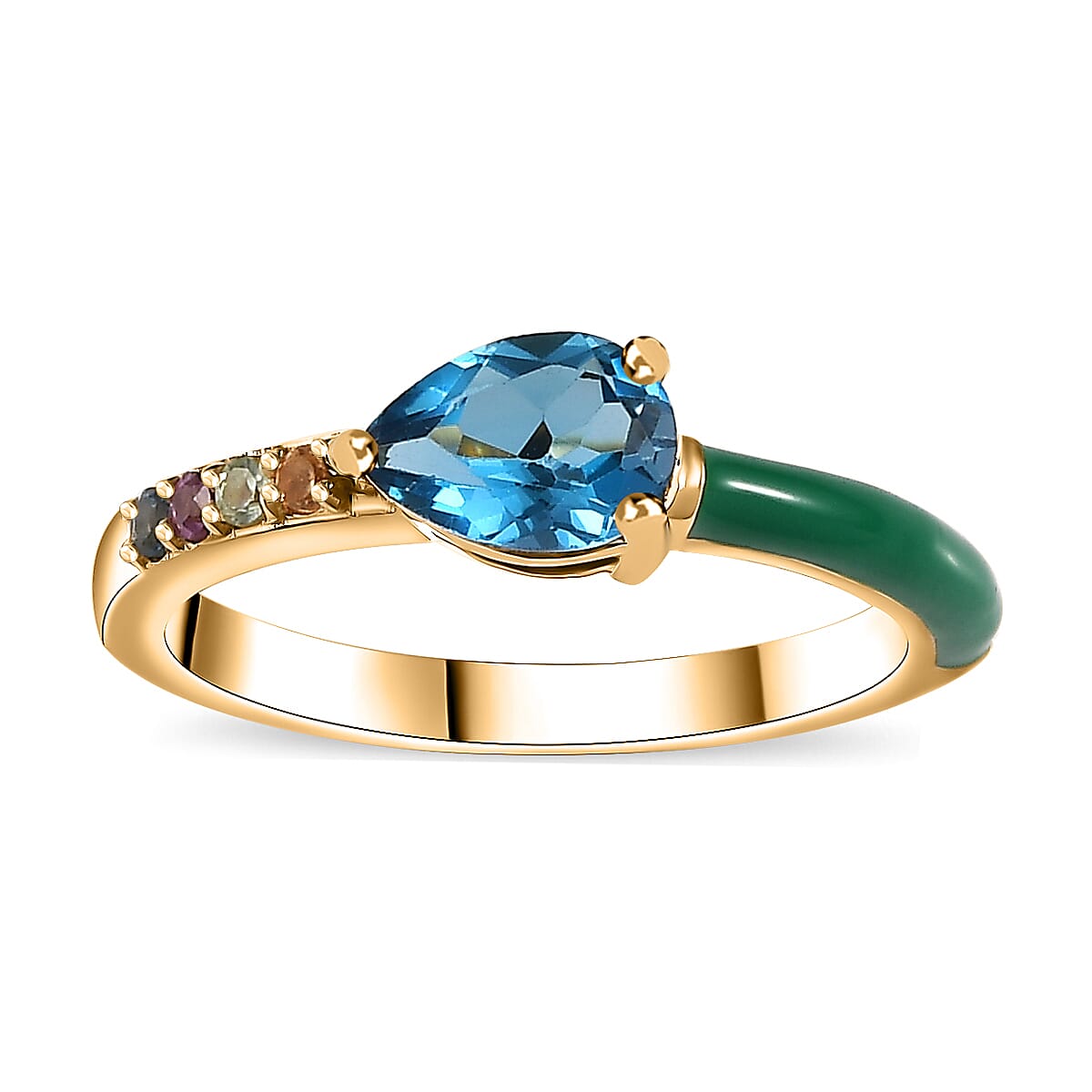 London Blue Topaz, Multi Gemstone Ring in 18K Vermeil YG Over Sterling Silver (Size 5.0) 0.70 ctw